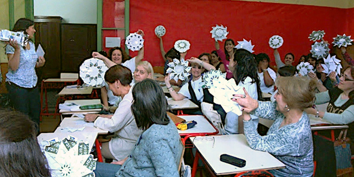 «Origami en el aula», a cargo de Laura Azcoaga, y «Mandalas de origami», por Gaby Orso, fueron los talleres abiertos al público y docentes en general, con numerosa concurrencia.