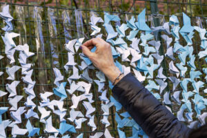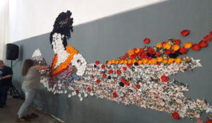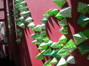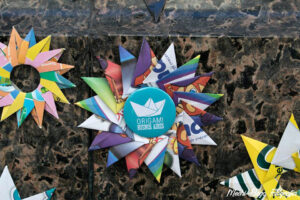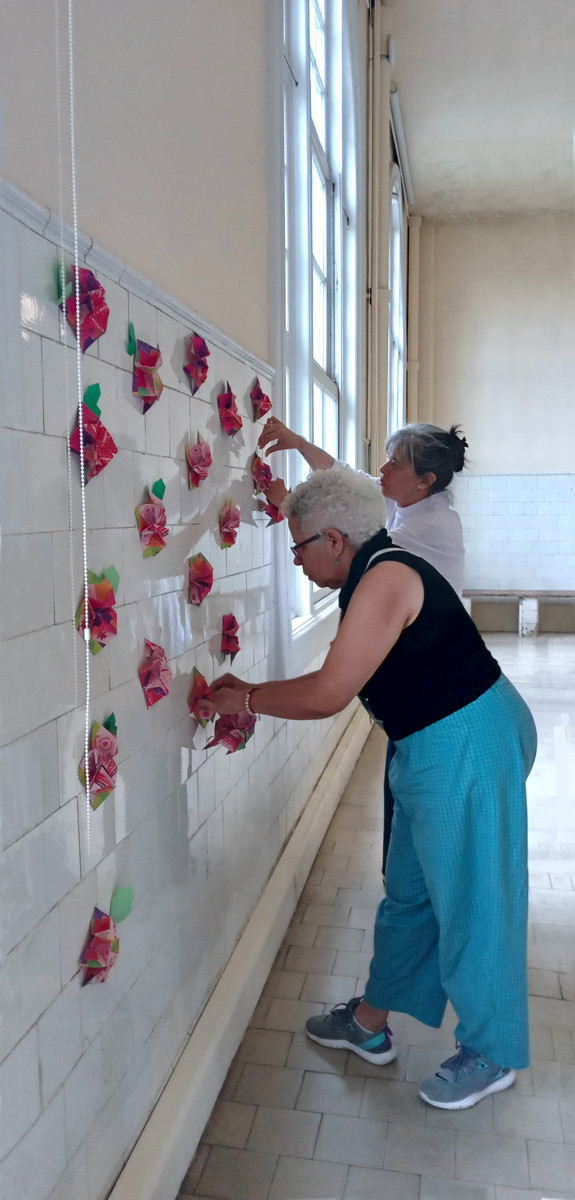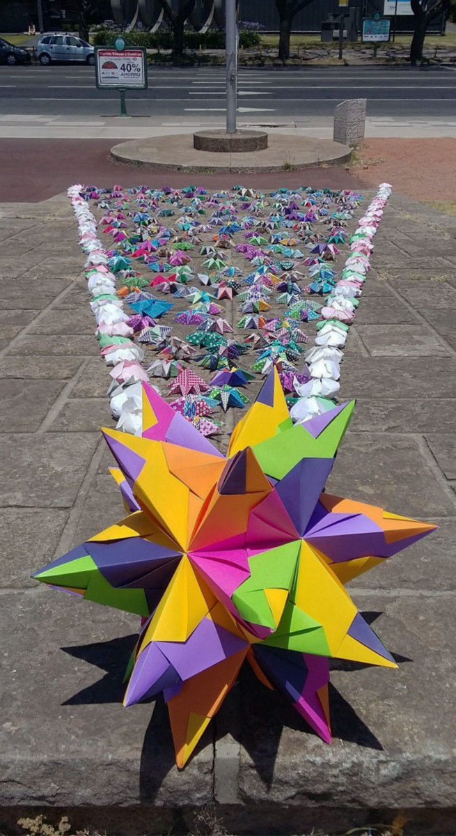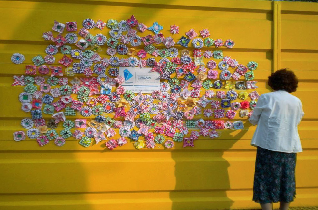 Los modelos realizados por socios y no socios durante varios meses antes de la intervención, un día toman vida y en unas horas el origami se convierte en «arte efímero».