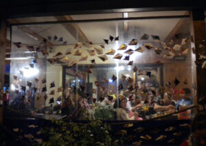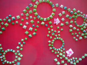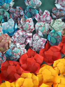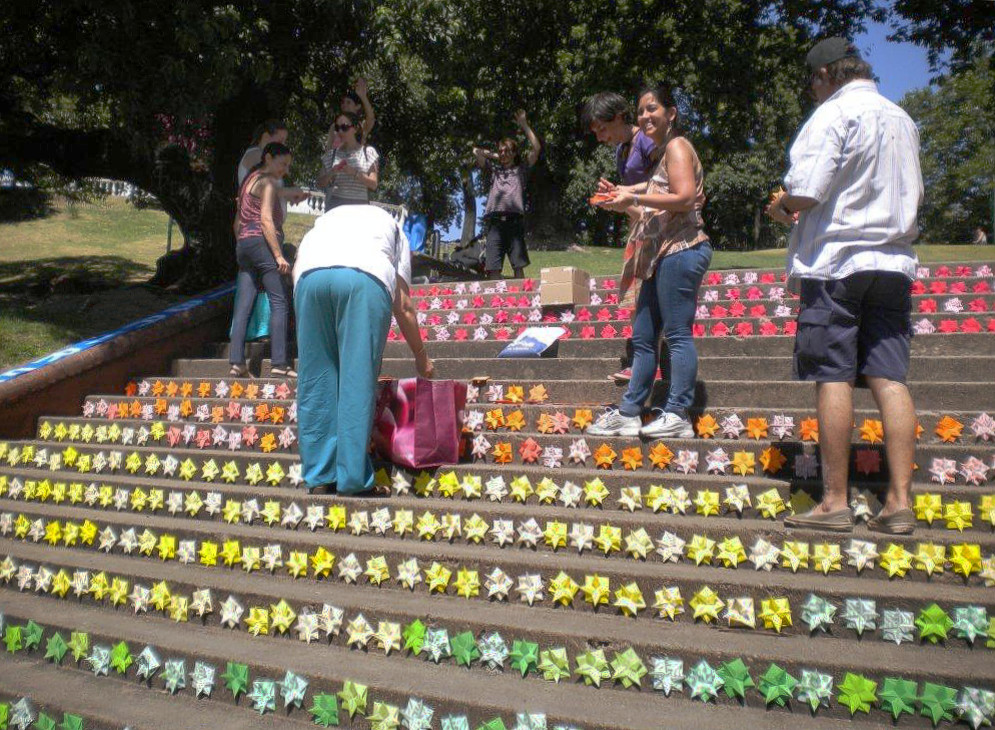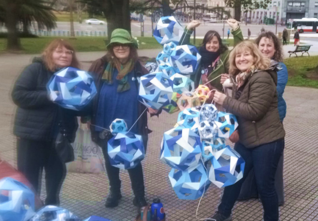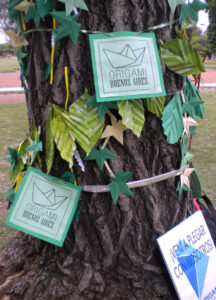Realizamos reuniones mensuales en el patio gastronómico de la Plaza Dr. Bernardo Houssay (zona Facultad de Medicina), intervenciones urbanas en distintos lugares de CABA, y cada dos años organizamos el Encuentro Metropolitano de Origami (EMO).
